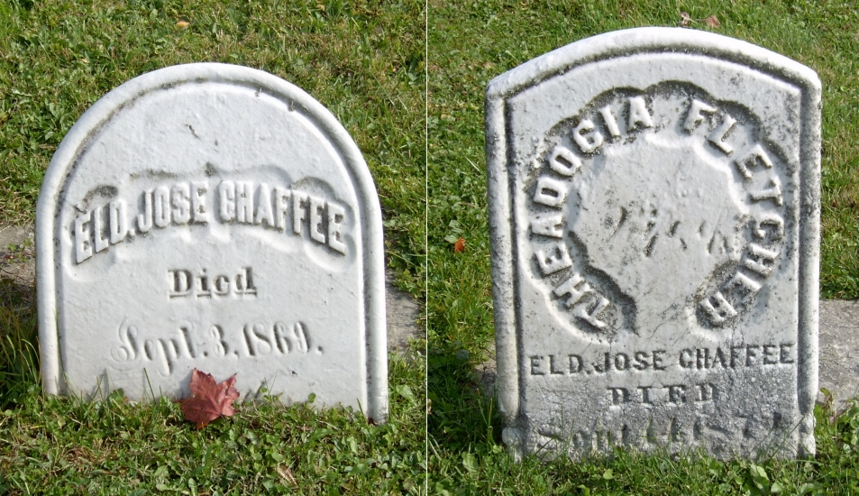 Jose and Theodocia Chaffee were laid to rest in Old Bristol Cemetery. Some of their descendants are buried in East Mecca Cemetery.