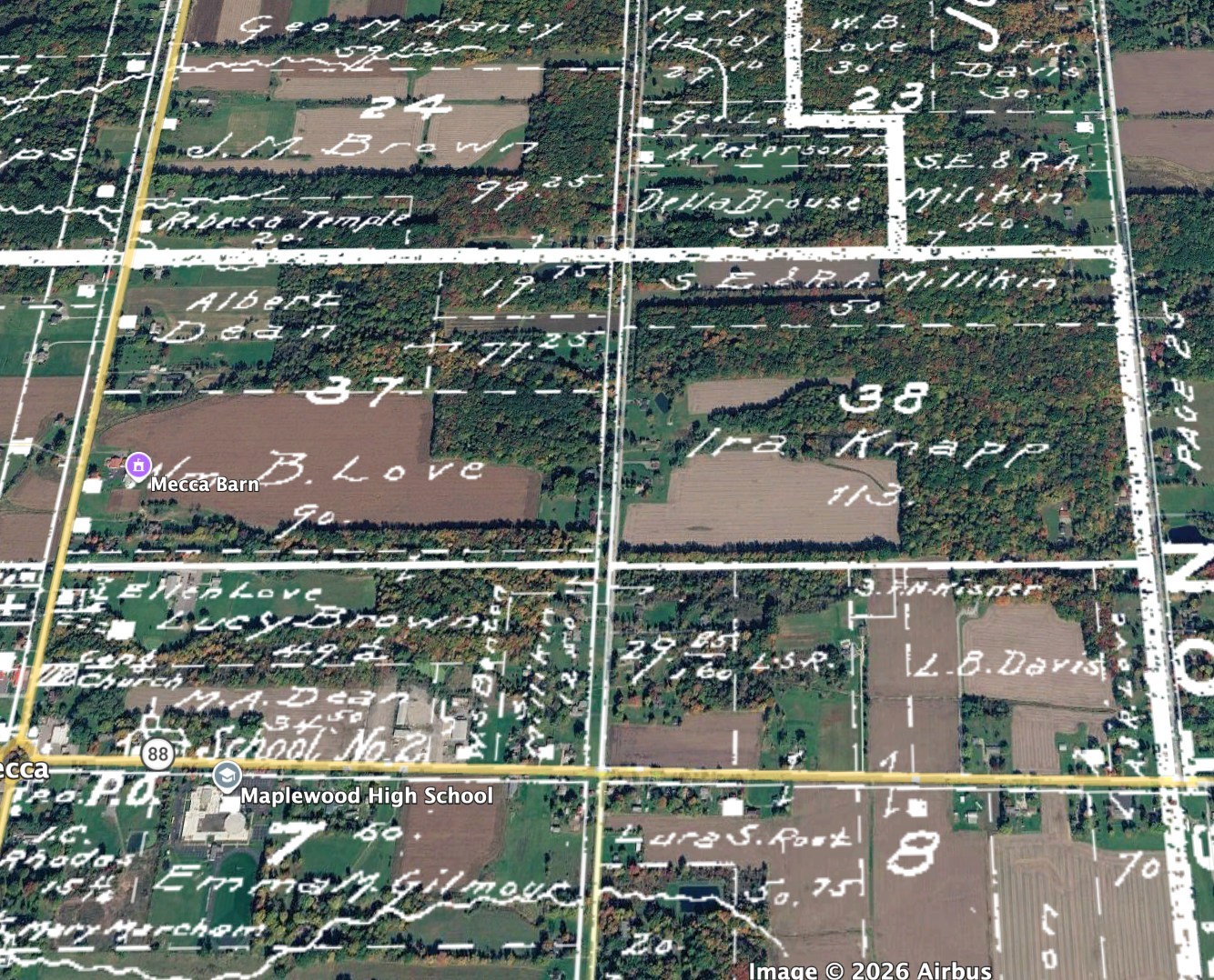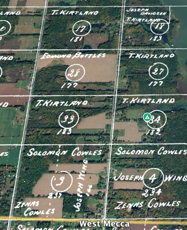 Per the 1830 census, Edmund Buttles lived on Lot 28 of the Kirtland Tract, on the north side of West Mecca. His closest neighbor was Joseph Davidson. He married Priscilla Feigle of Mecca in 1826.
