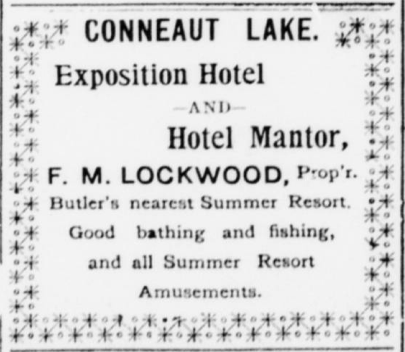 On June 1, Frank Lockwood, proprietor of Exposition Hotel, married Mary Conroy of Jamestown, NY, at the Commercial Hotel in Meadville, PA.