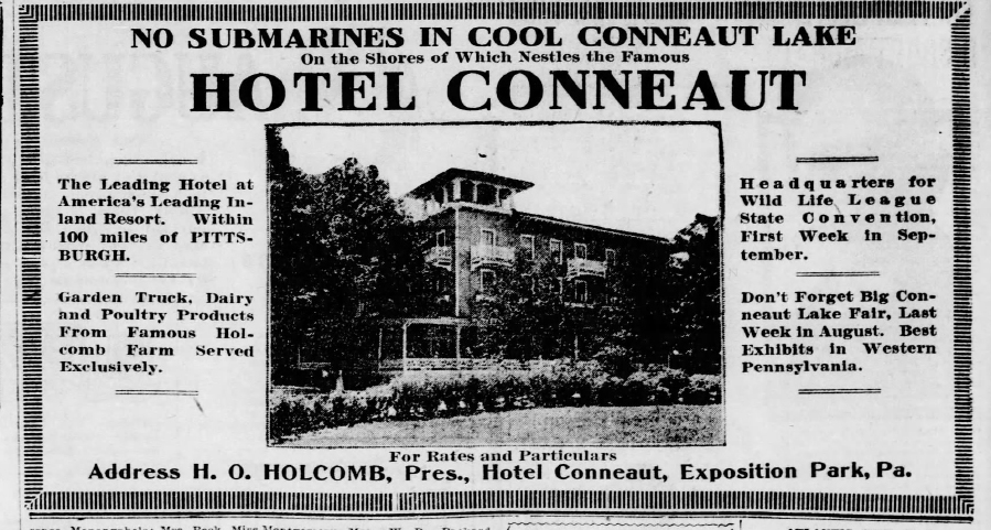 A guest of Hotel Conneaut, Judge W.E. Porter of New Castle, spent so much of his vacation in the water that he returned home quite red with sunburn. Ed Boyle, Beaver County Clerk of Courts, was also a guest of the hotel.