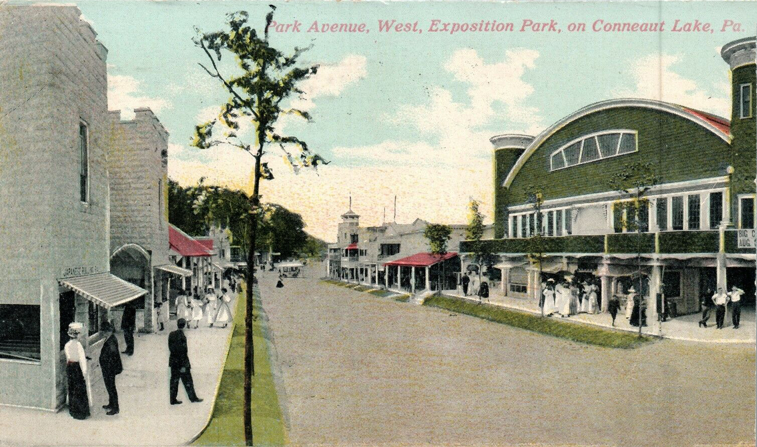The midway at Exposition Park, dance pavilion at right, 1910 postcard
