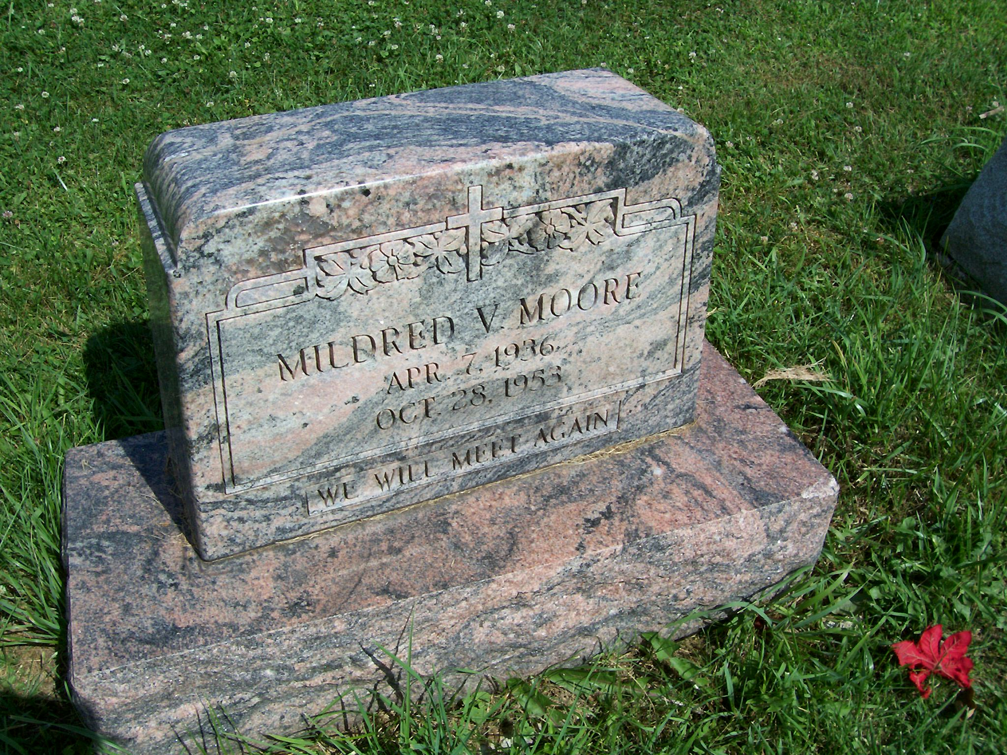 Mildred’s stone at Sand Hill Cemetery, photographed by my cousin Carla Tustin