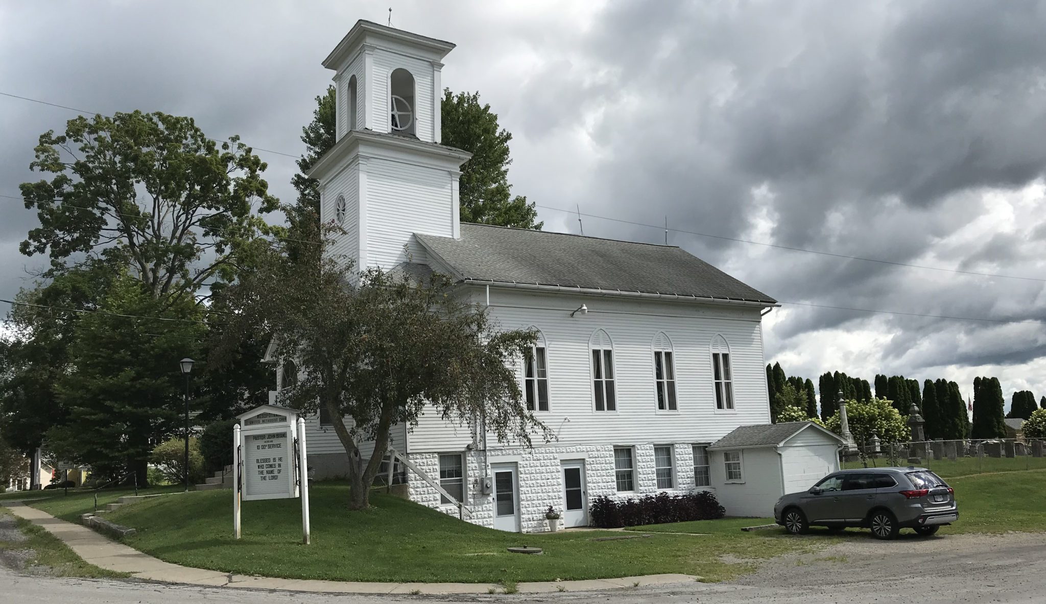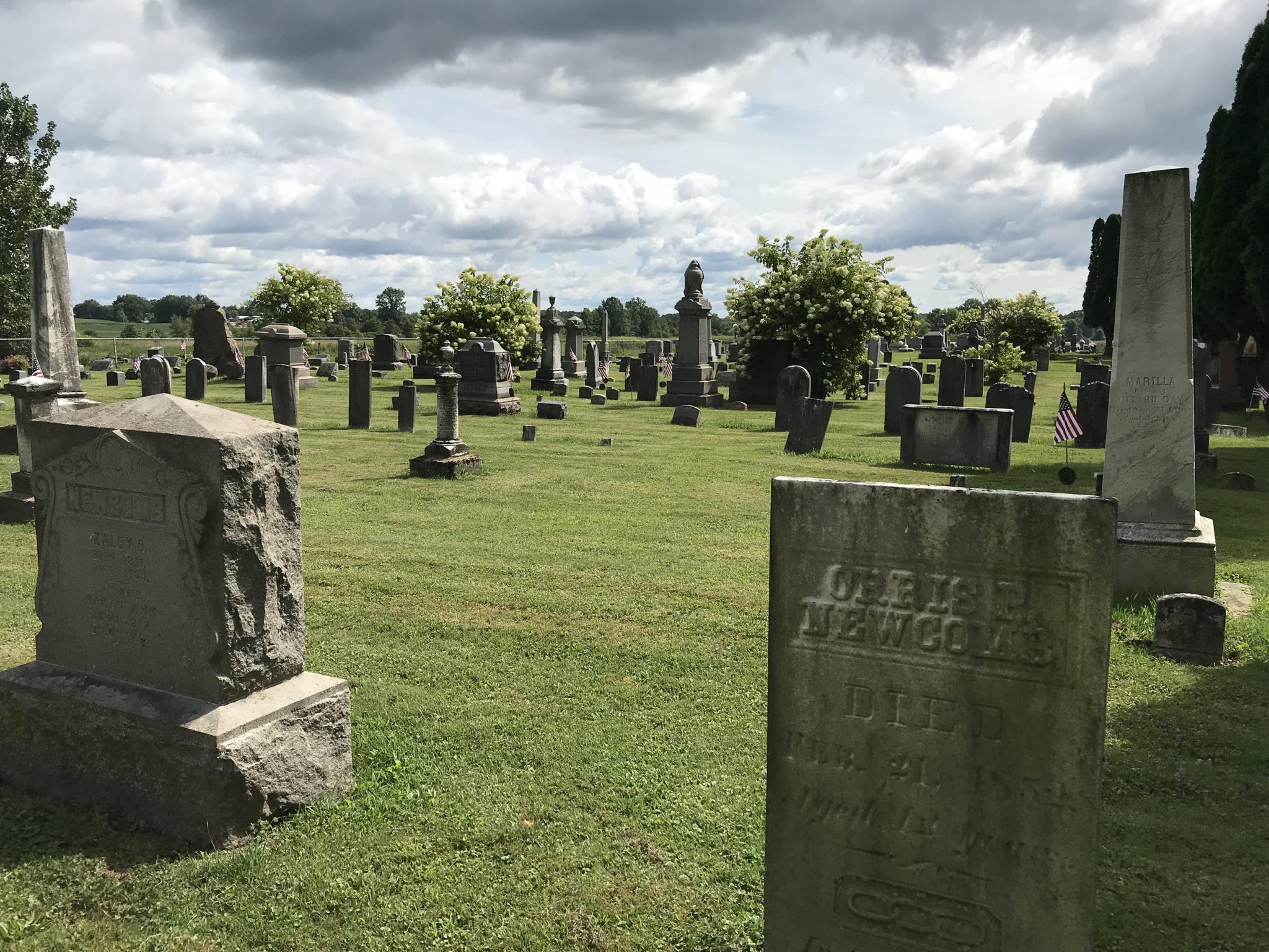 Behind the Methodist Church lays Fairview Cemetery. With the first burial in 1818, most of the stones are made from white marble with their inscriptions worn away with time. However, many unusually shaped stones carved from sturdy granite stand out among the rows.