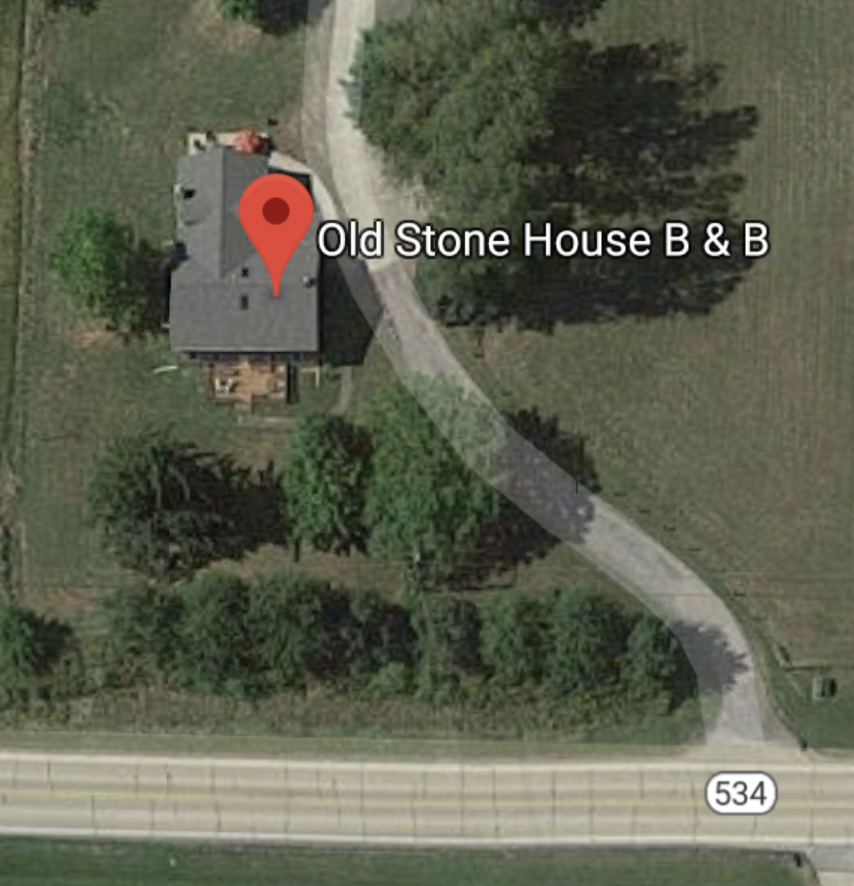 Google aerial map of Old Stone House