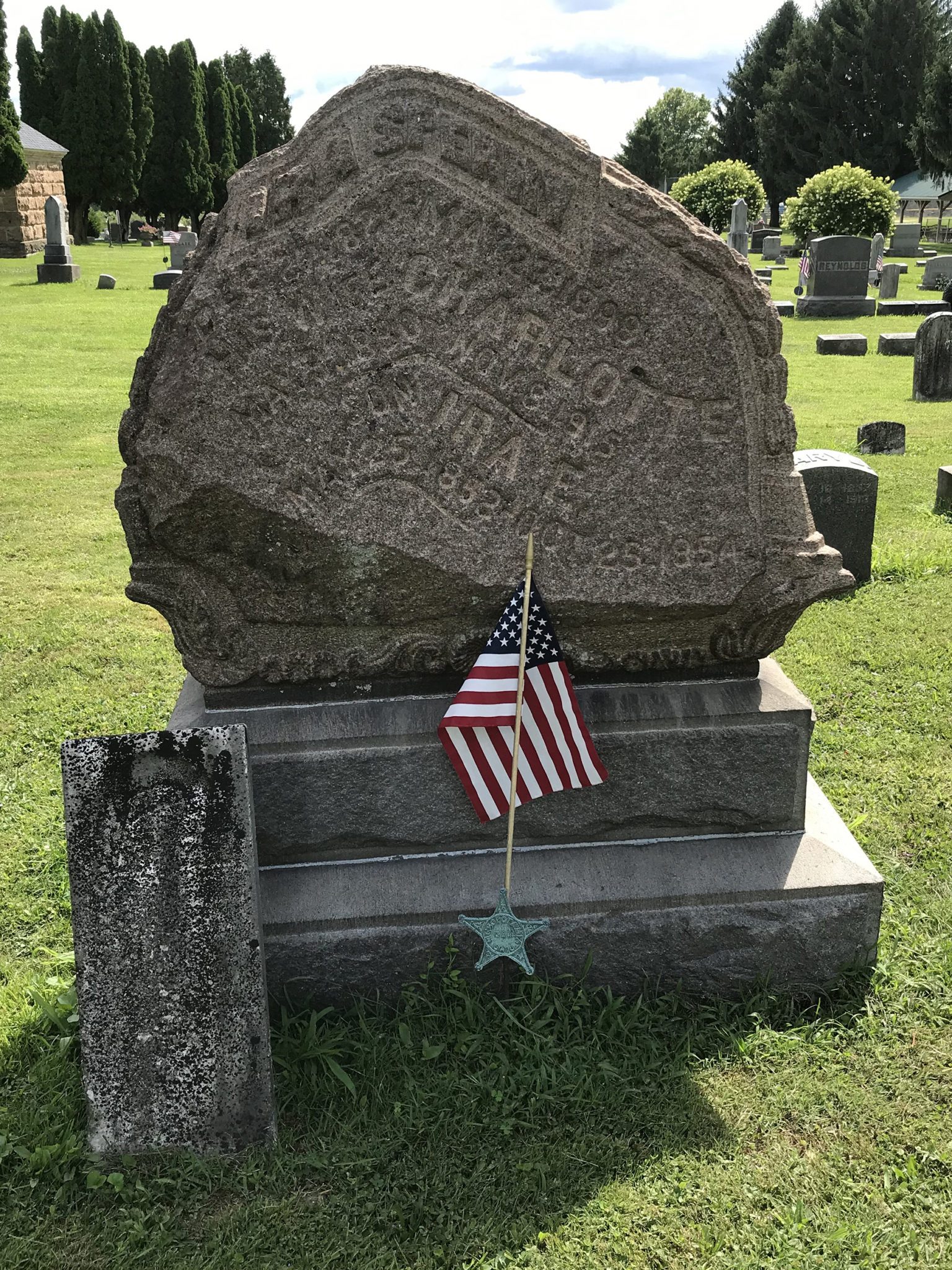 Front and back of stone carved for Ira & Charlotte Sperry and their two-year-old son Ira