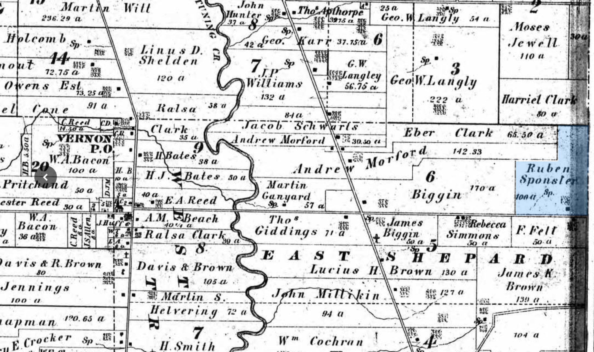 1870 Map of eastern side of Vernon Twp.